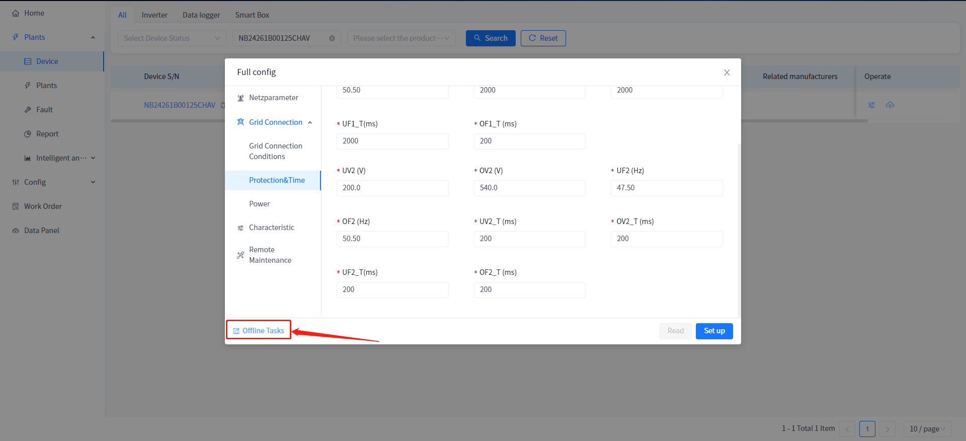 ② Find the offline devices under your Plant and click on the "More" - "Configure" button on the right.