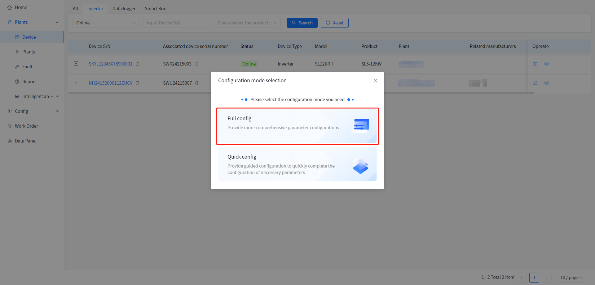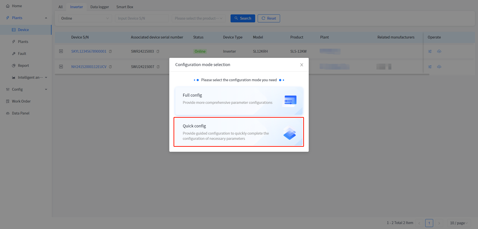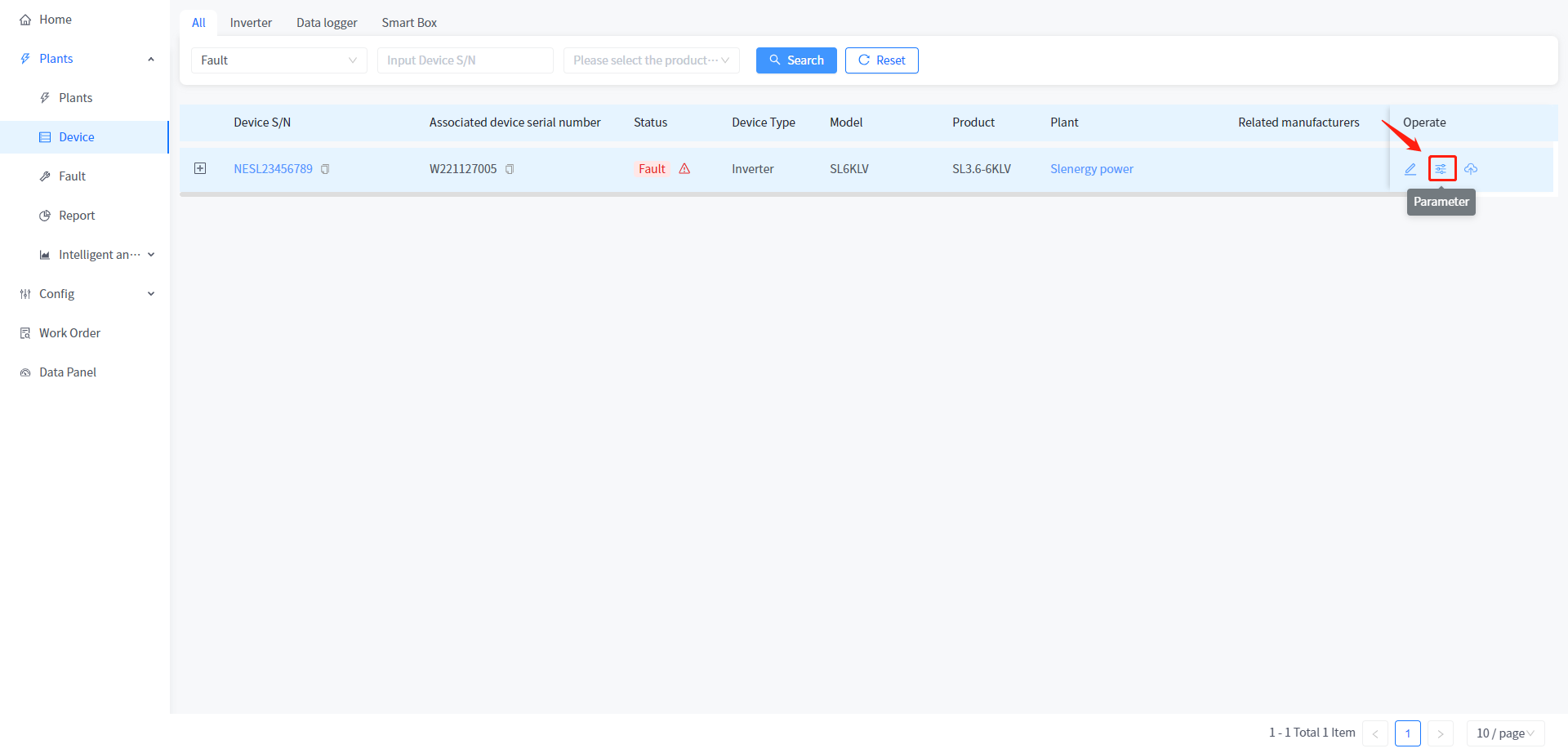 ① Click Plants - Device Management to enter the device list page.