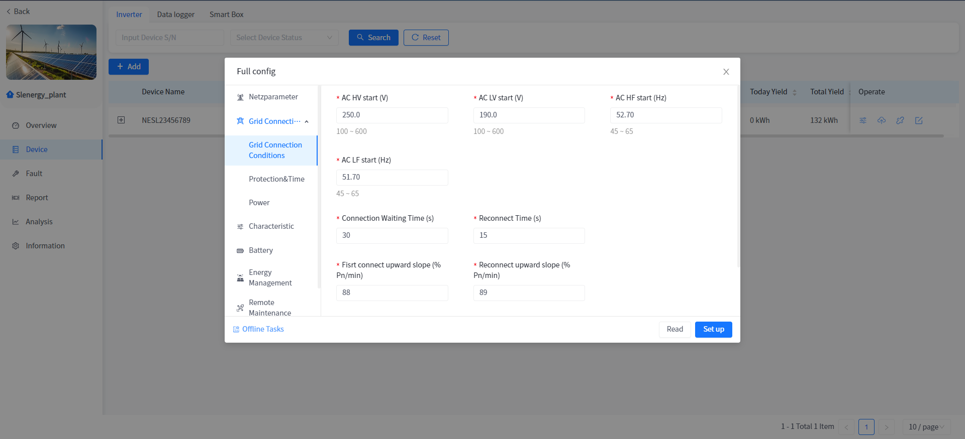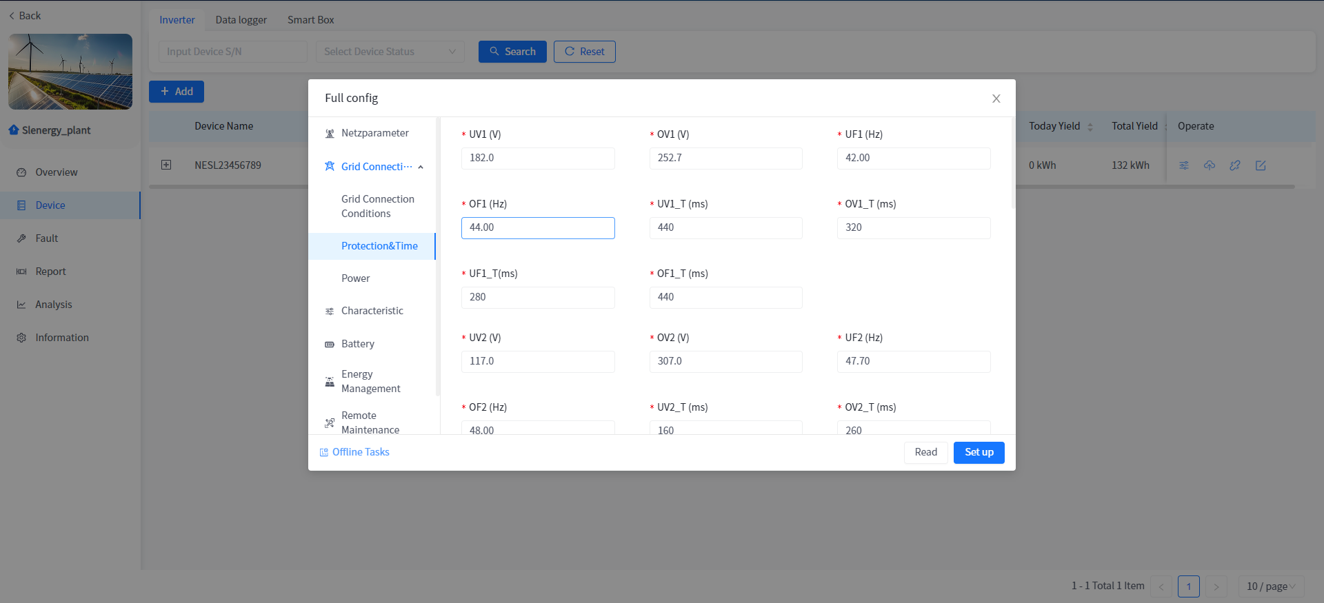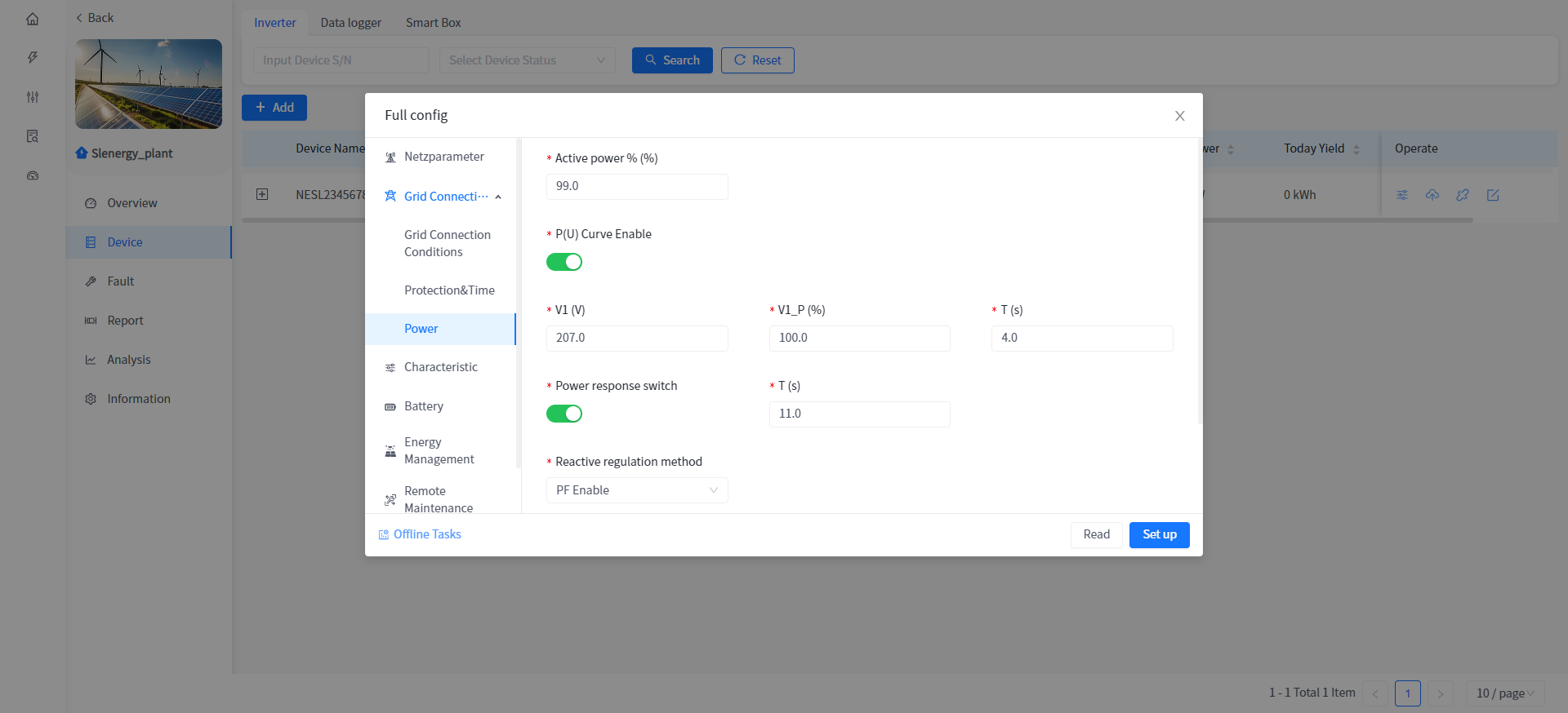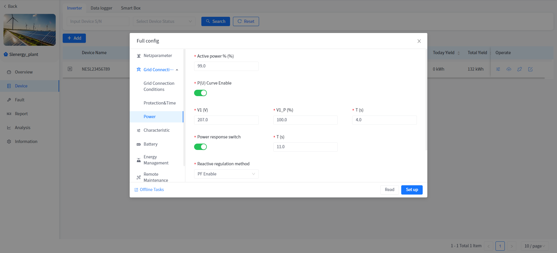 This system supports the operation of reading or setting the working parameters of the Device in the power plant Device details.