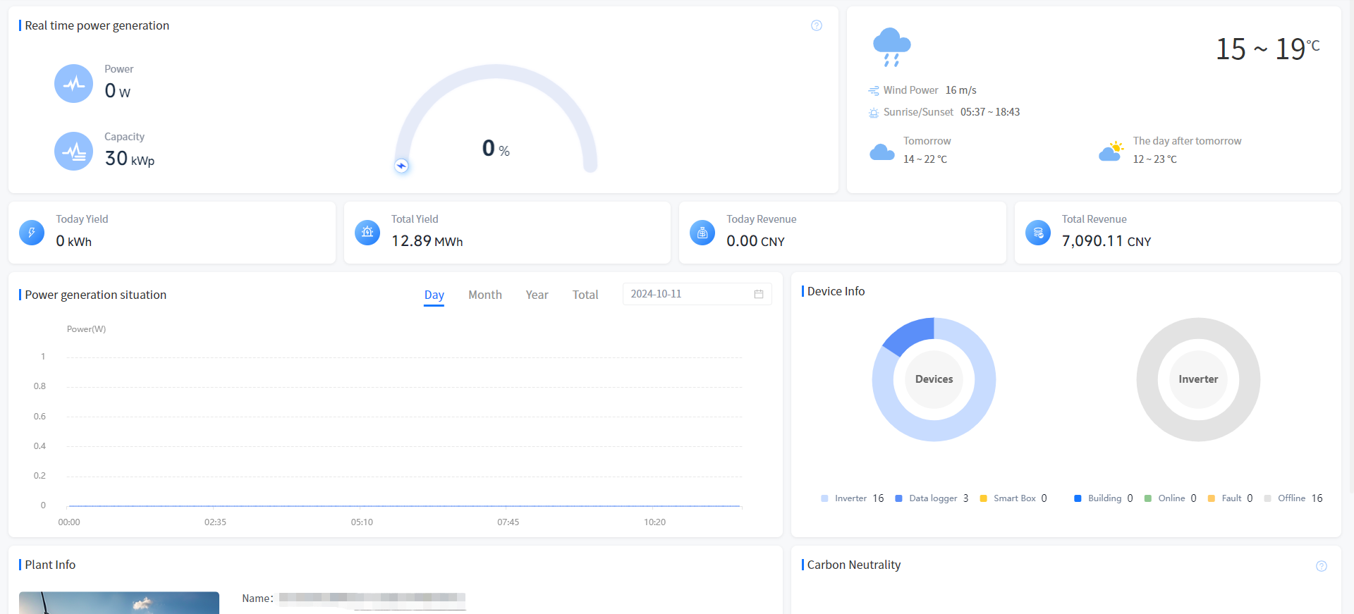 [Electricity] Show the real-time power and generation statistics of photovoltaic power generation at your selected plant.