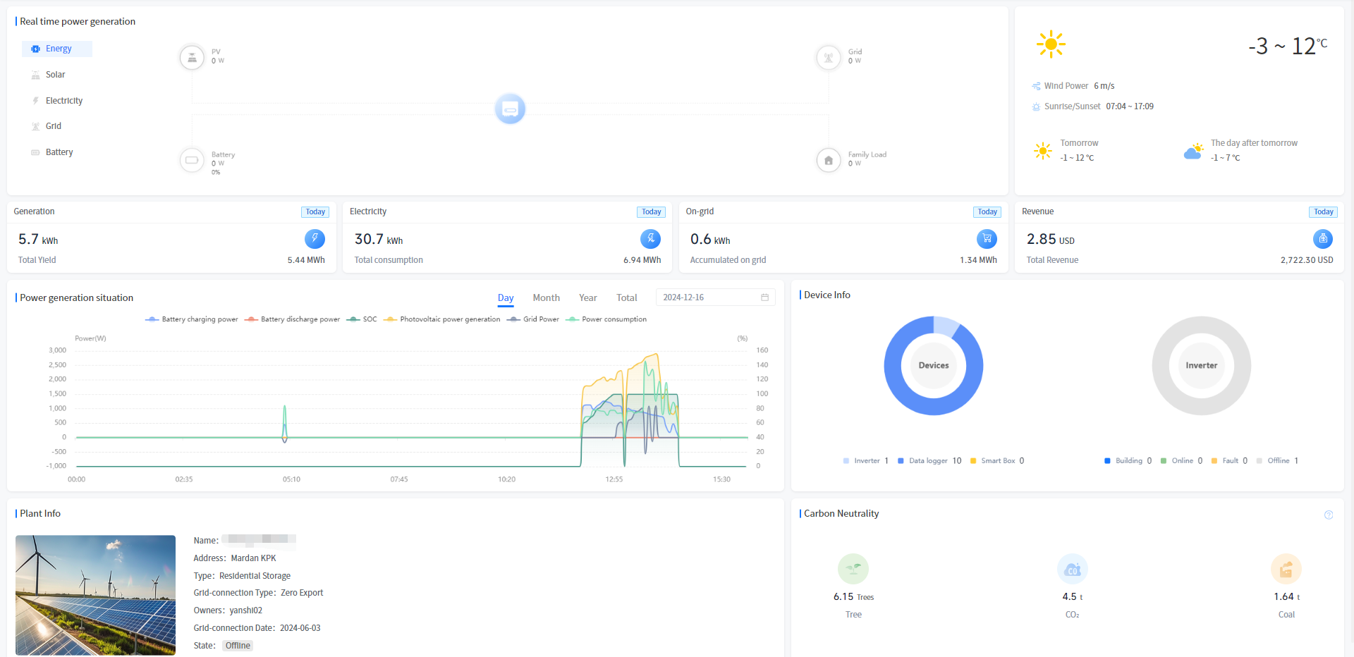 [Solar]Display the real-time power and generation statistics of photovoltaic power generation at your selected plant.