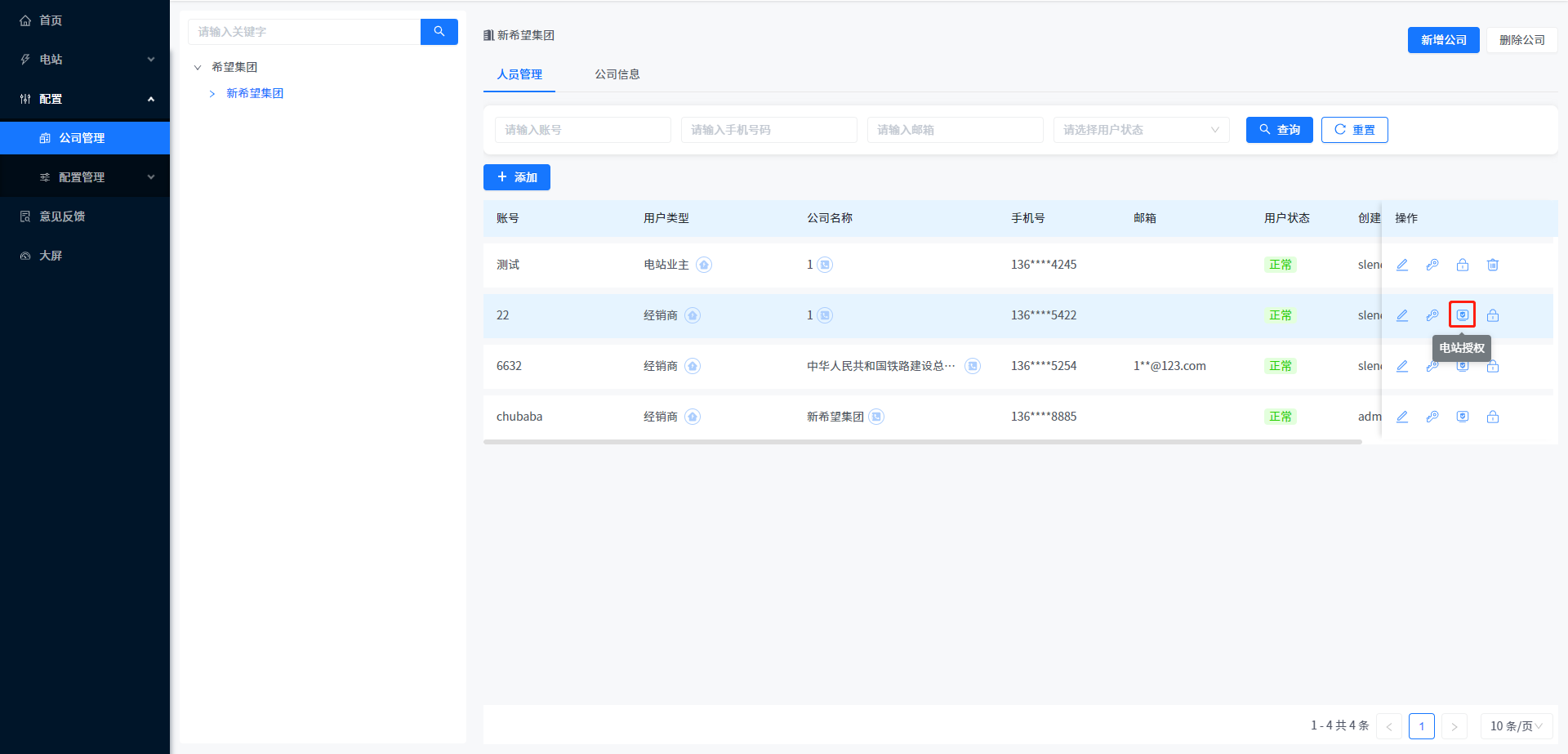 您可以将电站授权给公司人员运营/运维/查看数据的功能(不包括业主),可授权电站包含经销商创建的电站、下属人员创建的电站和下级经销商/安装商创建的电站。
