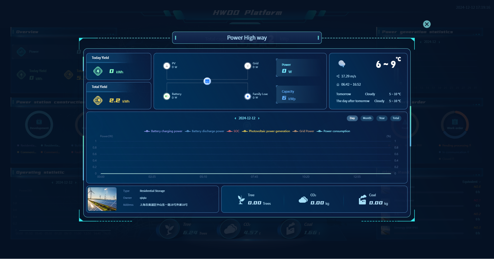 您可以在大屏中点击电站名称查看任意一个电站的详细信息。